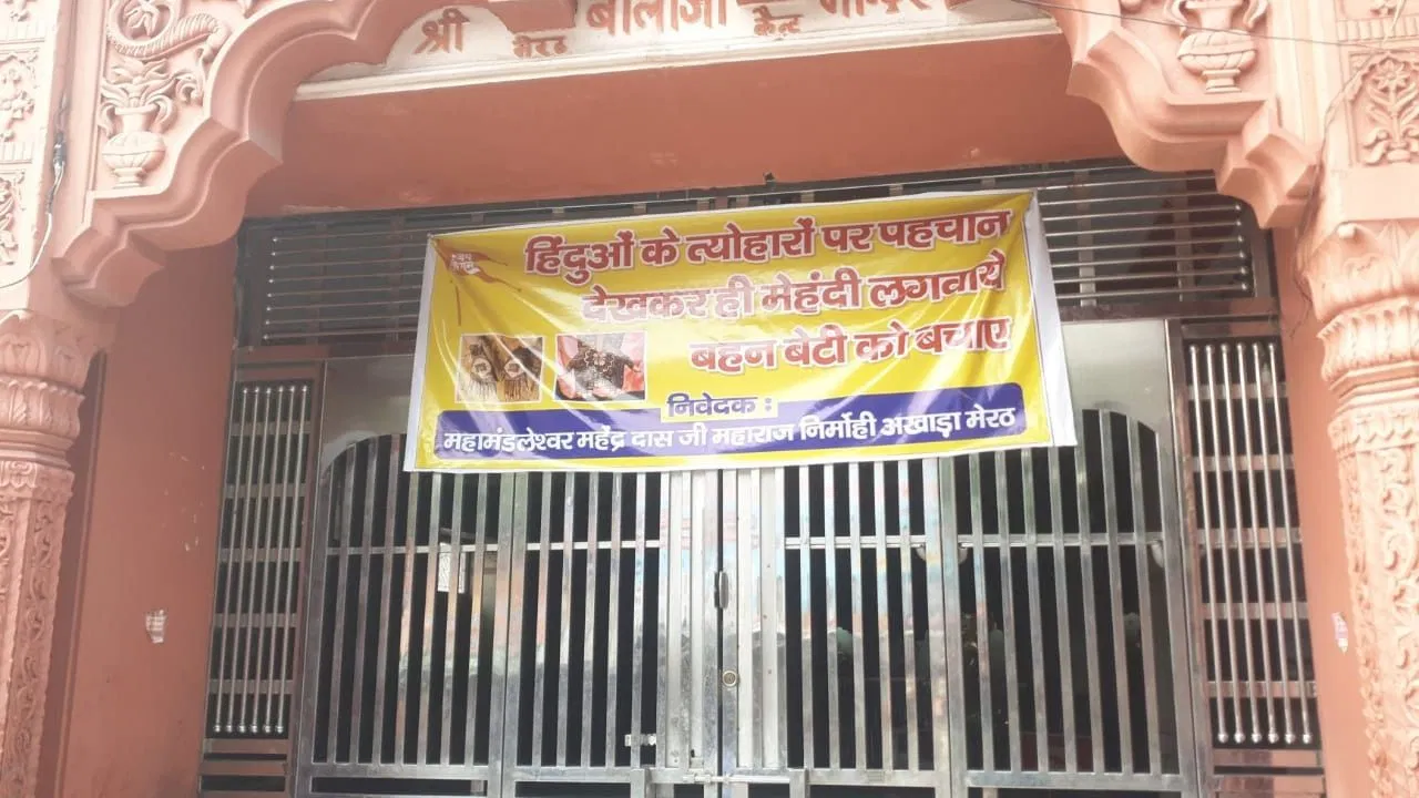 ‘पहचान देखकर ही लगवाएं मेहंदी…’, मेरठ में मंदिर के बाहर लगा विवादित बैनर